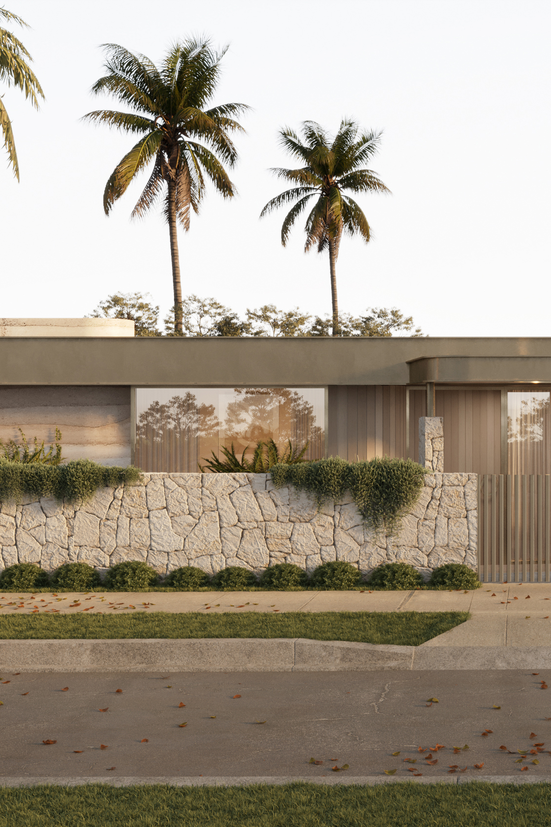 A refined palette of natural materials creates depth and longevity, allowing the architecture to sit comfortably within its coastal environment. The use of beautiful rammed earth upon the entry sets a moment of stillness.